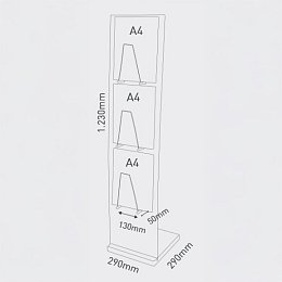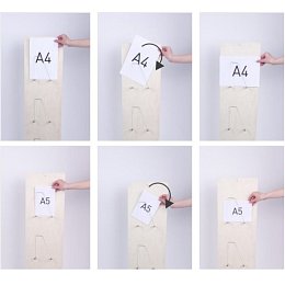 Samostatne stojaci stojan na brožúry s 3 priehradkami na formát A4 a A5 vo formáte na výšku a na šírku, vyrobený z dreva a nehrdzavejúcej ocele.