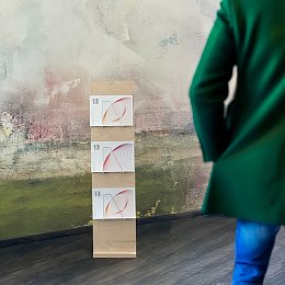Neošetrené drevo s certifikátom FSC z regiónu Tridentsko-Južné Tirolsko a držiaky z nehrdzavejúcej ocele vytvárajú pre ekologicky uvedomelého zákazníka šetrný katalógový stojan. Navrhnutý a vyrobený v továrni v Južnom Tirolsku. Dizajnový stojan na brožúry vyrobený v Taliansku z obnoviteľných a recyklovateľných materiálov, regionálne vyrobený a dodaný v priebehu niekoľkých dní.